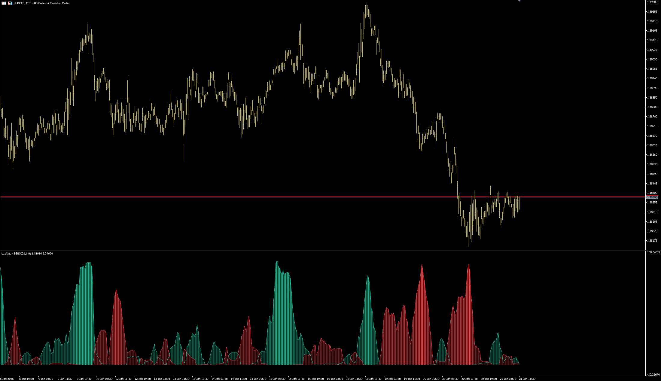 The Bollinger Bands Breakout indicator is a volatility-based oscillator for MetaTrader 5 designed to identify periods of price expansion after consolidation. It helps traders detect potential breakout phases when market volatility increases.