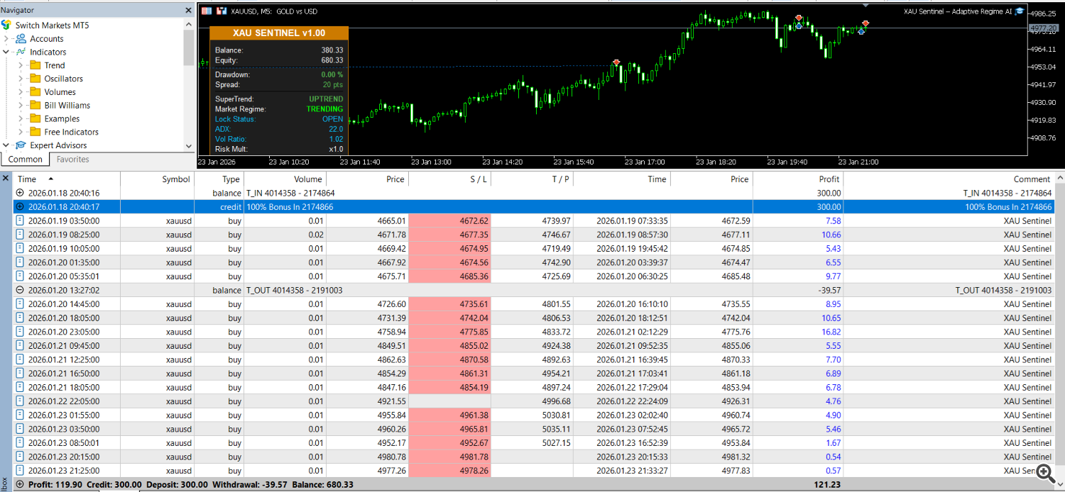 In my previous article, I explained the theory behind XAU Sentinel: a trend-following EA designed to filter out the noise using a "Market Regime Engine" (MRE).