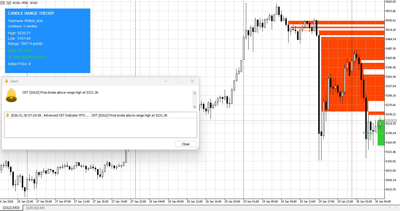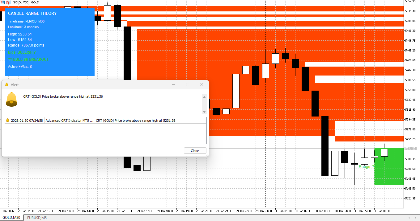 The indicator monitors price in real-time and alerts you the moment a breakout occurs. No more staring at screens or missing opportunities. You'll know instantly when price breaks above or below the range.