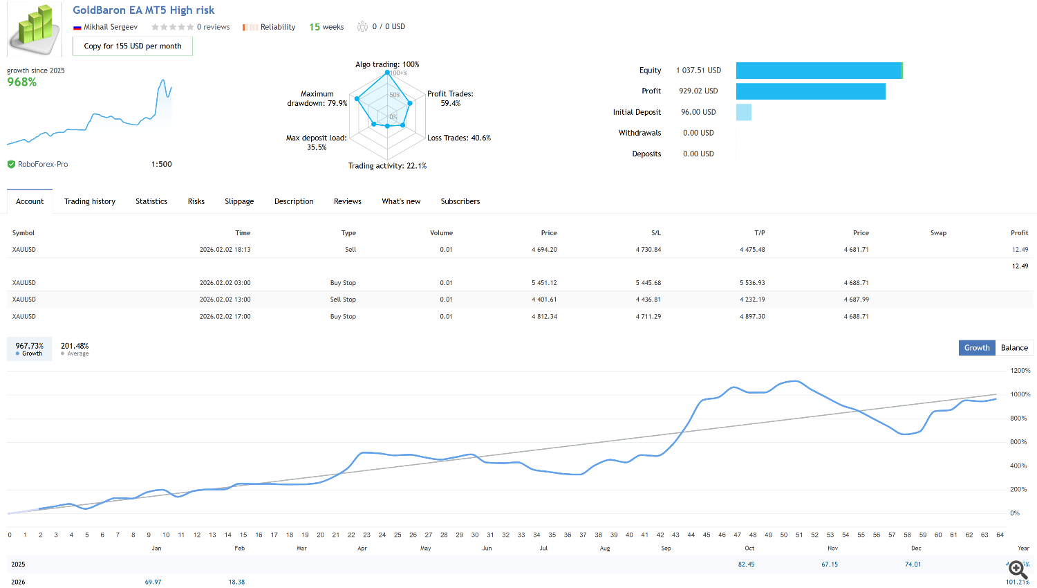 - Based on the indicator, a fully automatic expert “ GoldBaron ” was created.