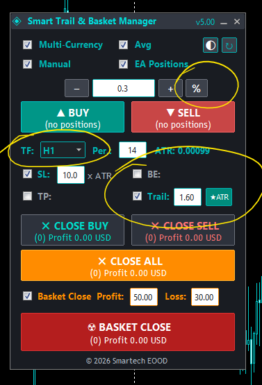 Version 5.0 is a major leap forward in algorithmic trade management. Whether you are a scalper needing tight M5 trailing or a swing trader looking for solid risk management on H4, Smart T&B Manager v5.0 has the tools you need.