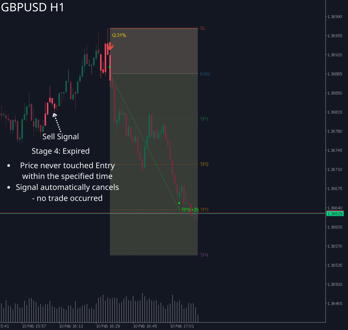 Signal automatically cancels - no trade occurred