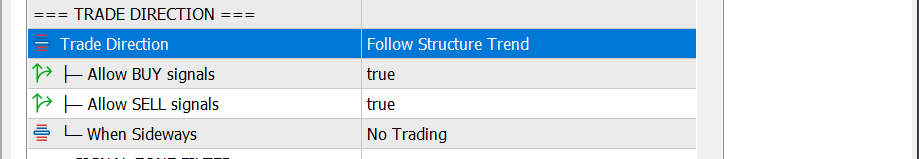 | Enable Trade Direction | Change Trade Direction from Off to Follow Structure Trend |