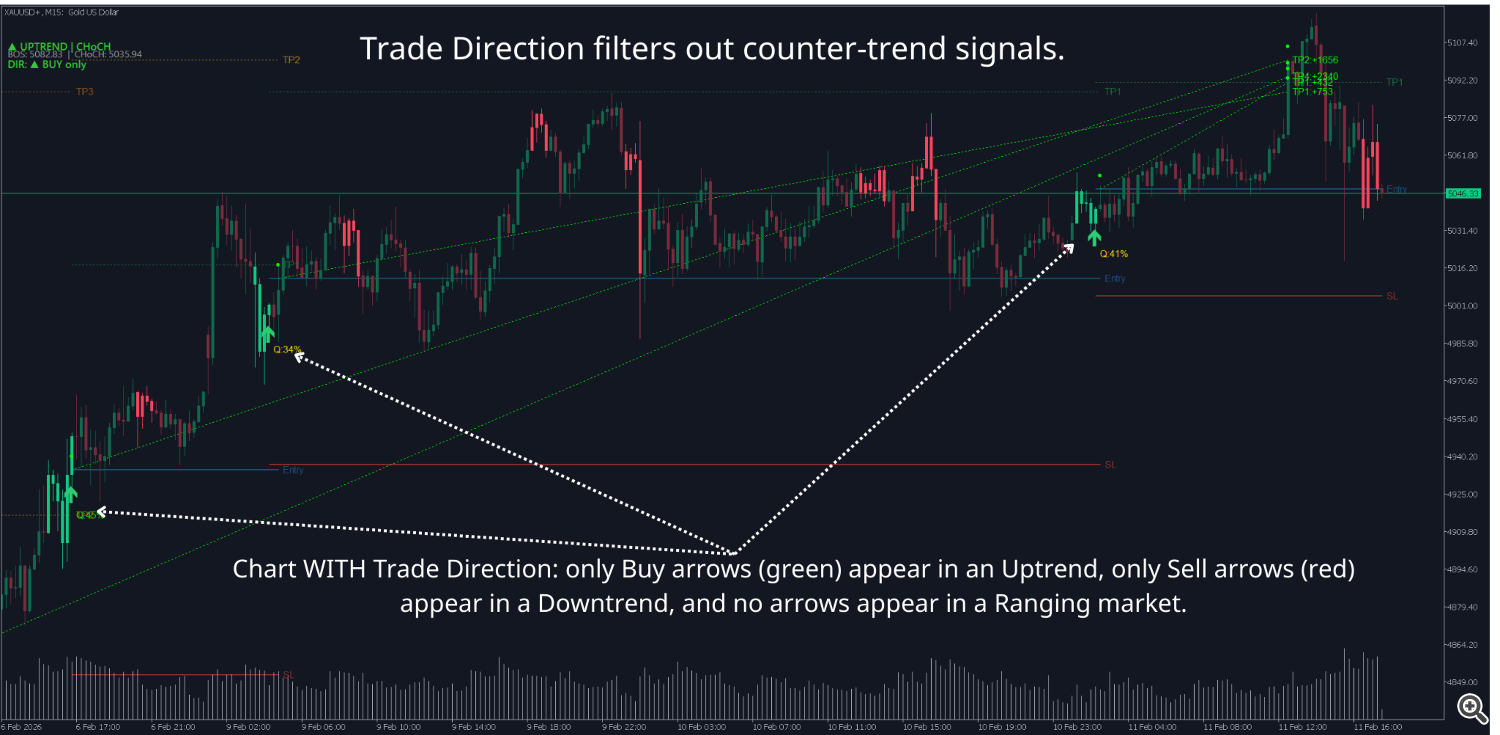 Trade Direction helps filter direction, but doesn't guarantee every signal will win. Risks still exist: