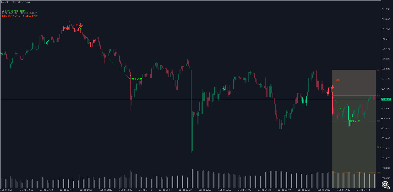 Tip: Enable Show BOS/CHOCH Lines in Market Structure to see trend change points on chart. When you see CHoCH → prepare for Trade Direction to change direction.
