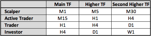 - the trend direction on the second higher timeframe;