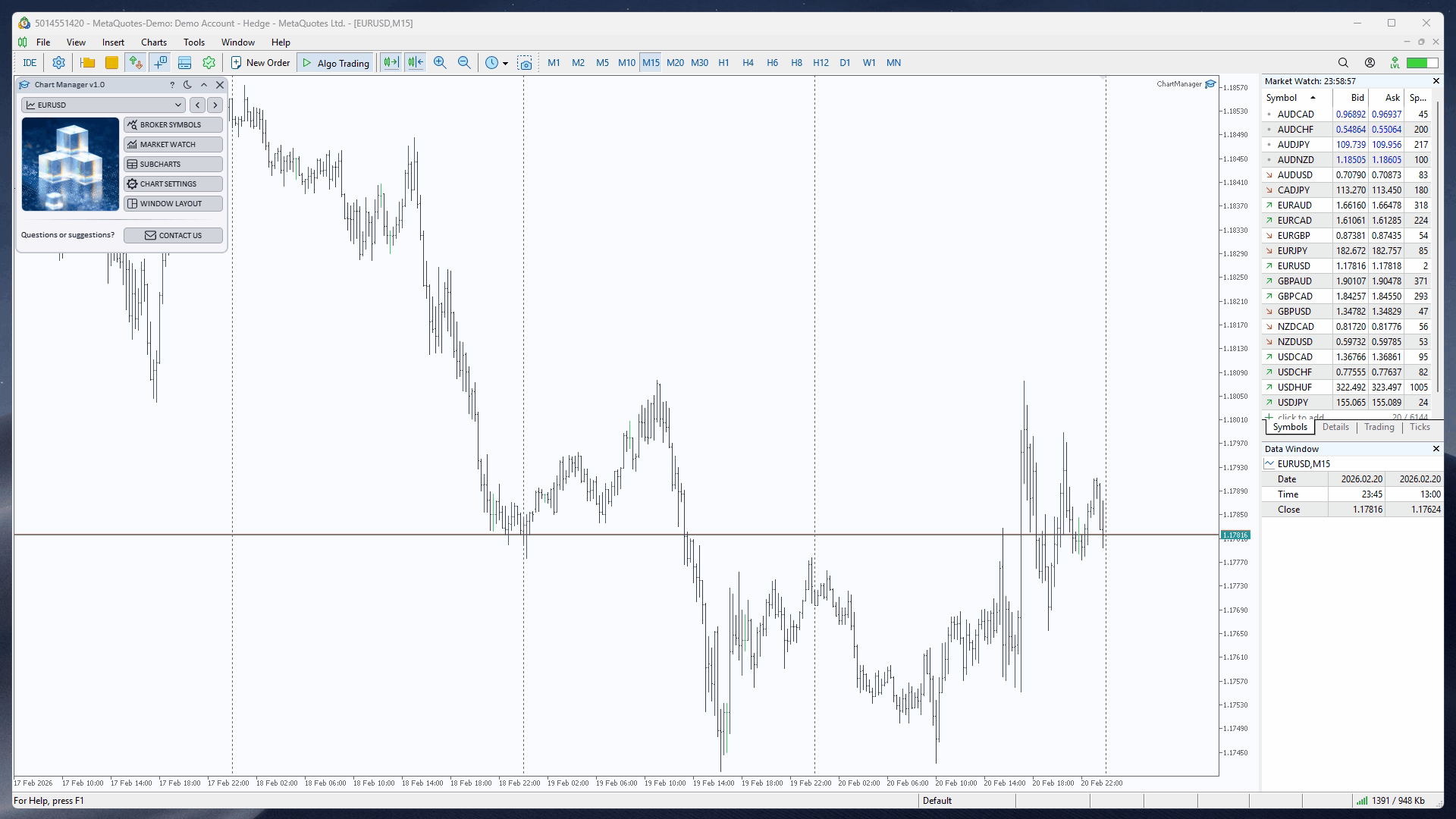- MARKET WATCH — opens the window for managing the list of tracked symbols and chart subwindows.