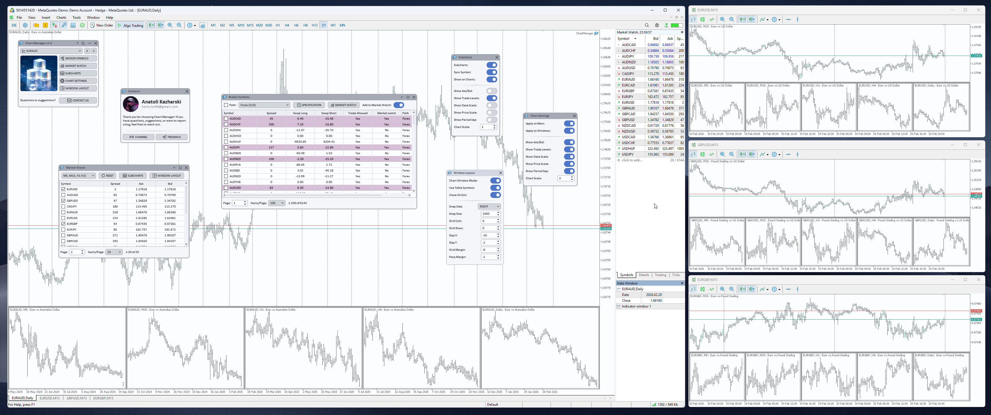 If you trade multiple instruments simultaneously, you have likely faced the same problem: detached chart windows in MetaTrader 5 need to be manually dragged, resized, and aligned next to the terminal. Add a new symbol or change the number of charts — and the entire arrangement has to be redone. This takes time that would be better spent on market analysis.