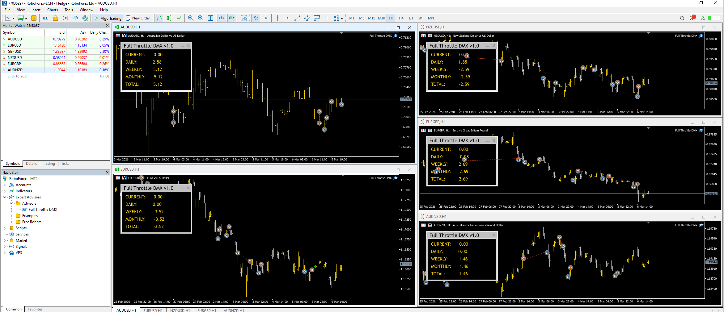 Just attach the EA to the following currency pairs on the H1 timeframe: