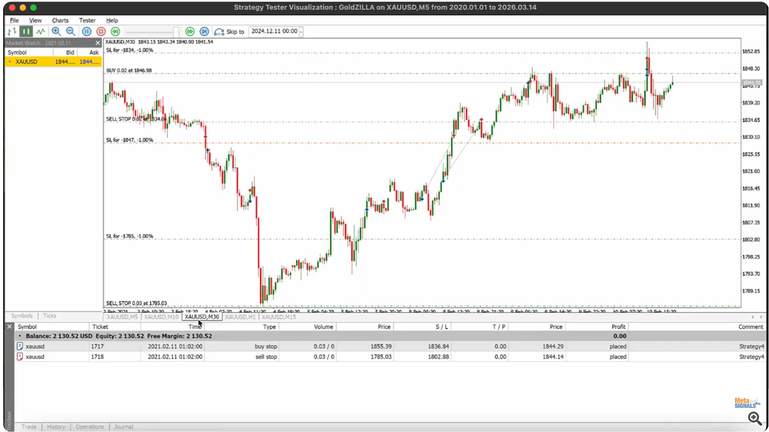 GoldZILLA AI is a multi-strategy algorithm detecting market regimes to dynamically select from five distinct strategies, optimizing returns while minimizing drawdown on XAUUSD.