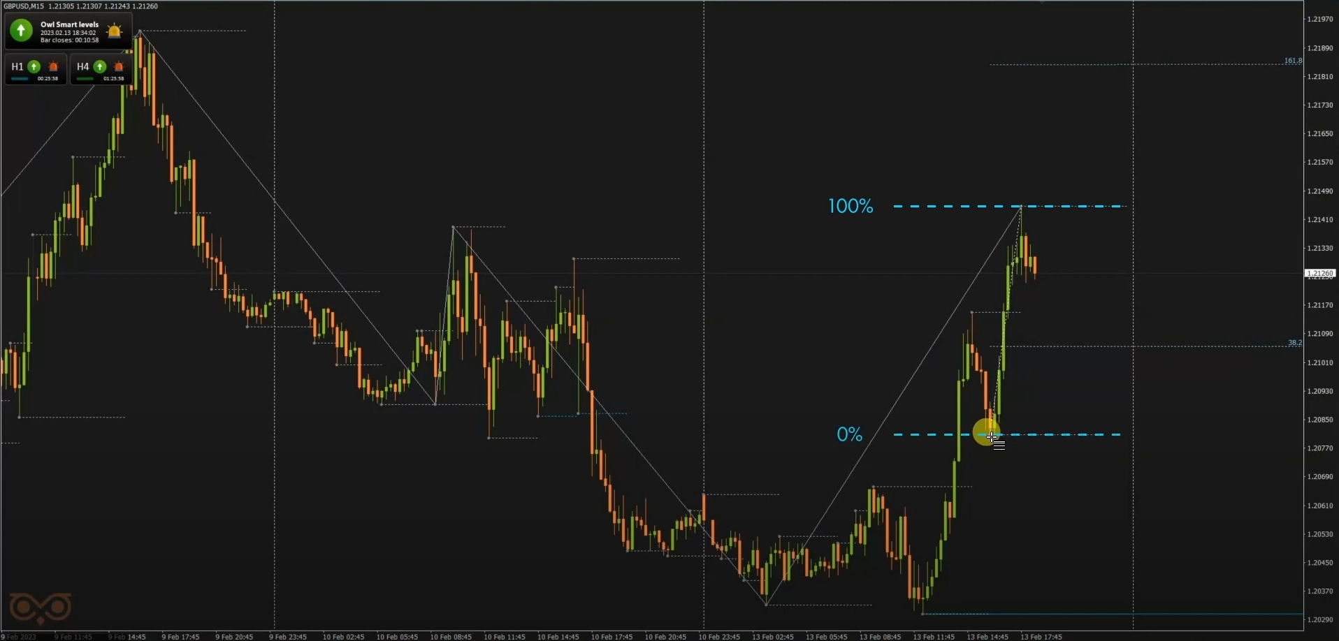 In the Owl Smart Levels system, corrections are used to find entry points through the Fibonacci grid.