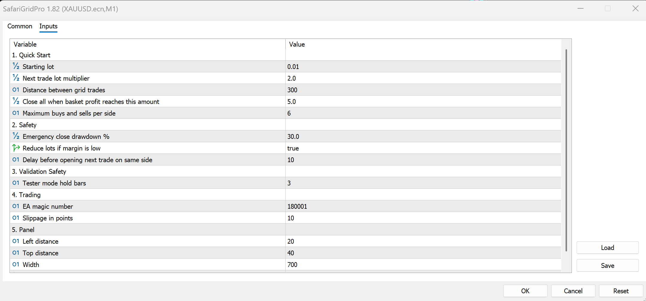 Safari Grid Pro was designed with simpler settings so first-time users can understand the EA faster.