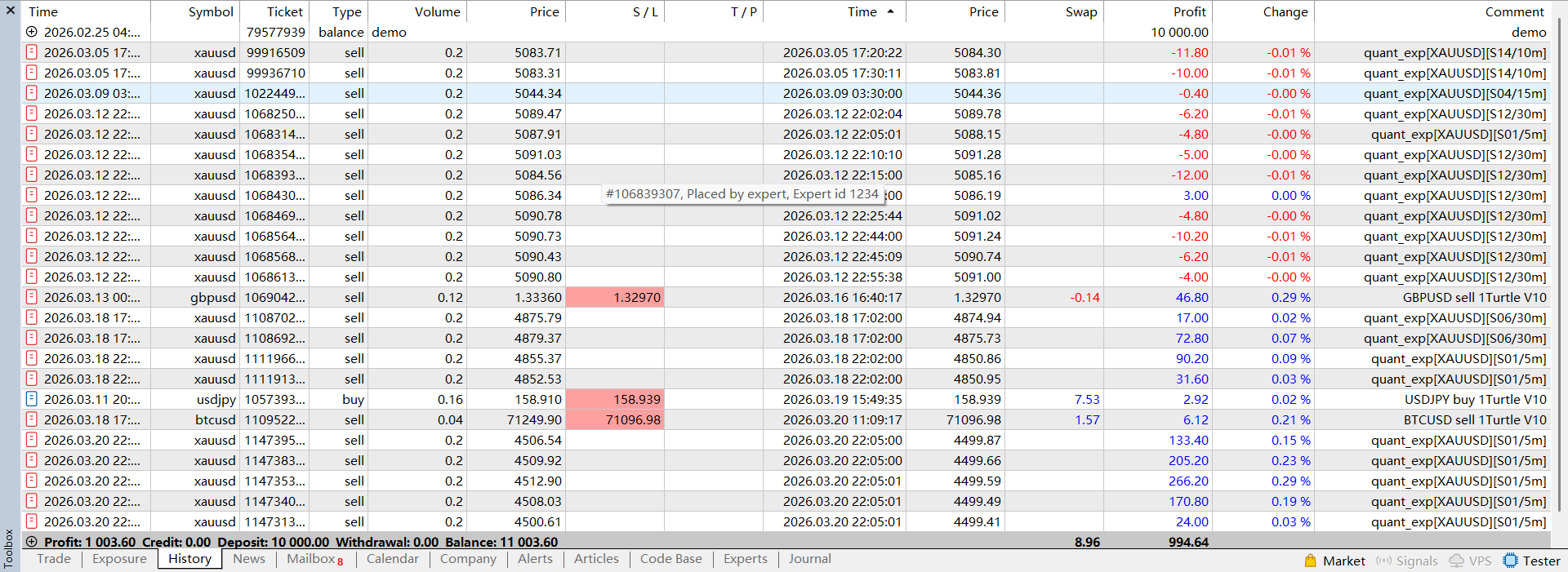 While Gold provided the explosive growth, Turtle Multi Pro managed the background diversification across BTCUSD, USDJPY, and GBPUSD.