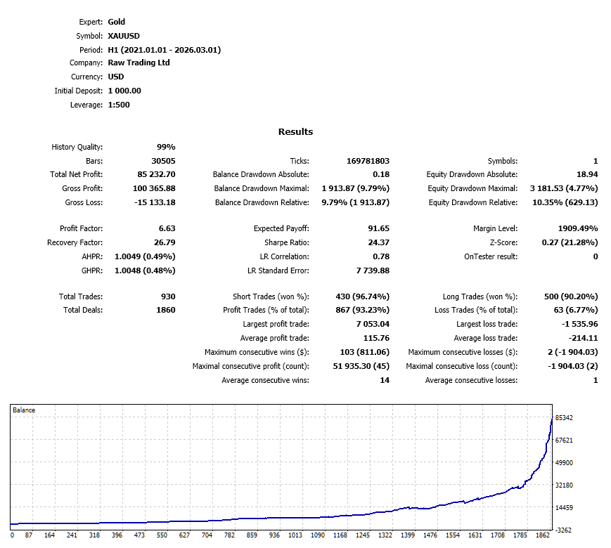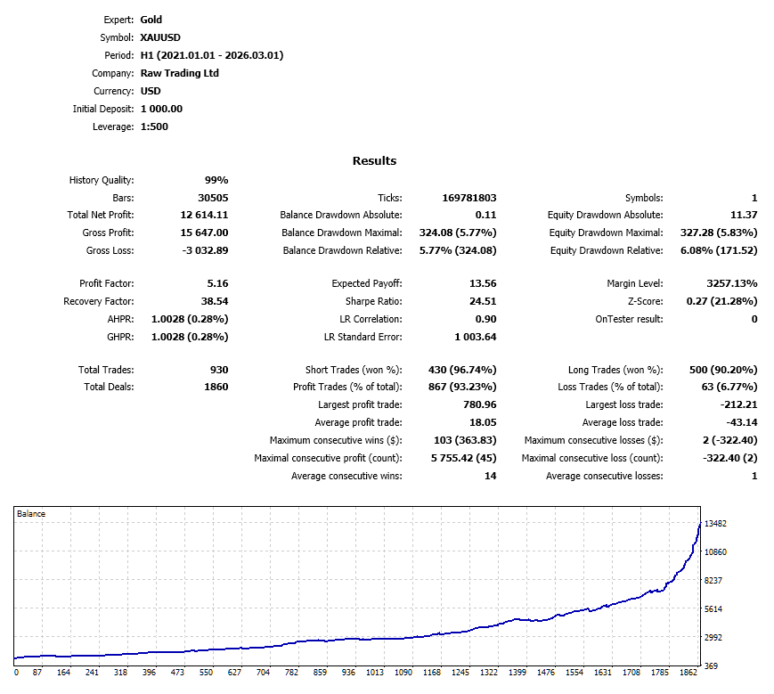 - Trading pair: XAUUSD H1.