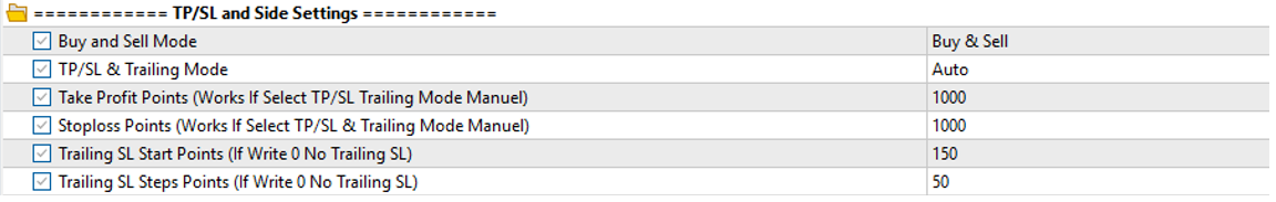 2. TP/SL AND SIDE SETTINGS