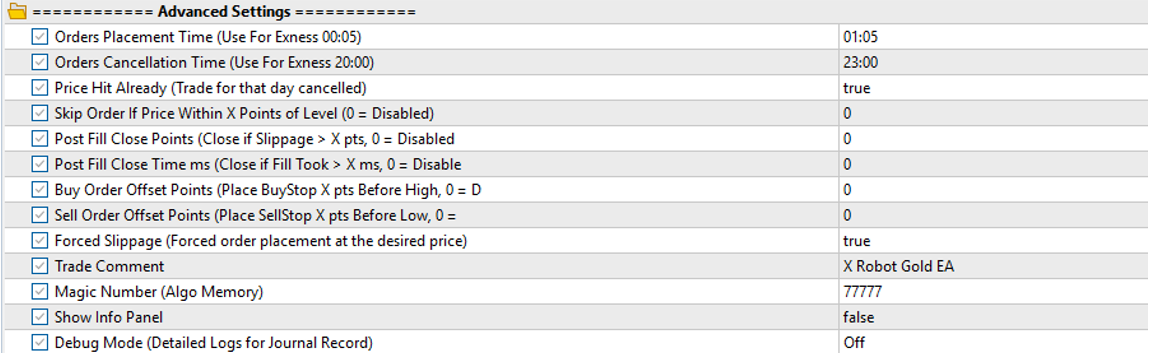 - Debug Mode & Trade Comment: Detailed logs for your journal records and clear trade identification (X Robot Gold EA) for easy tracking.