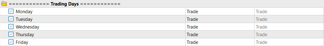 - Monday – Friday: Weekly planning. Set to Trade or No Trade based on the economic calendar or liquidity expectations for specific days.