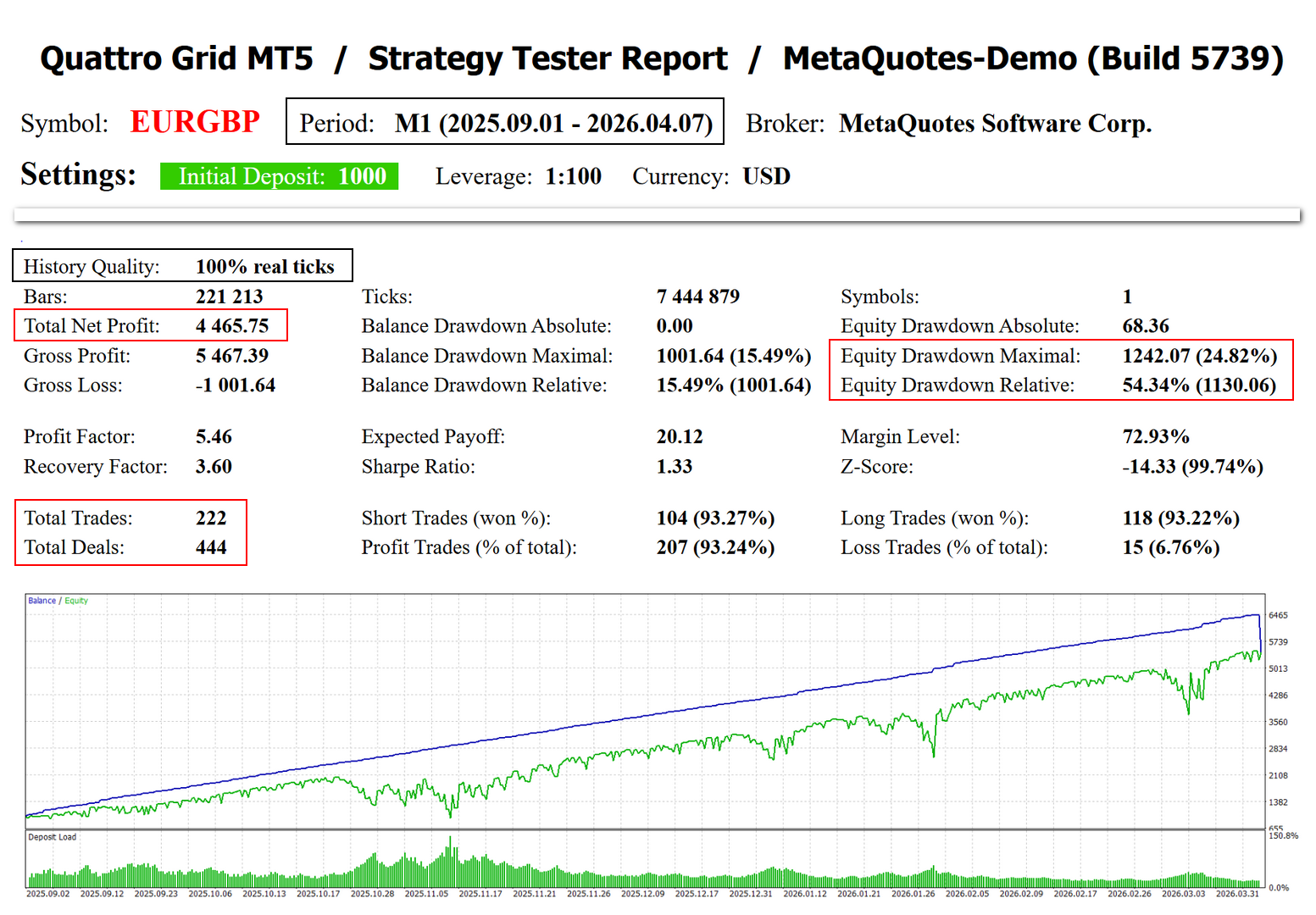 Test #3: EURGBP ( long-term grid ) Quattro Grid MT5 (v.1.0 - 2026)