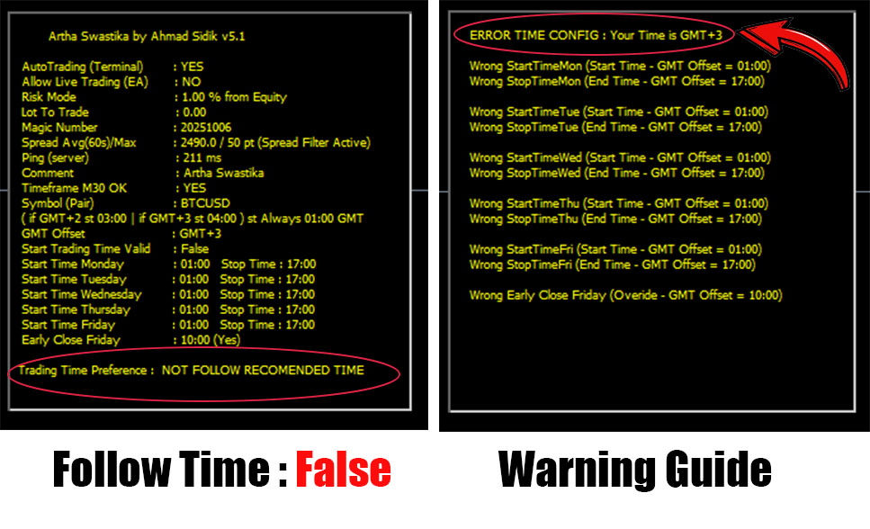 - Always check your broker GMT offset before setting trading hours
