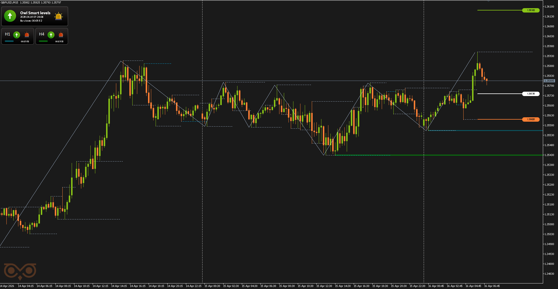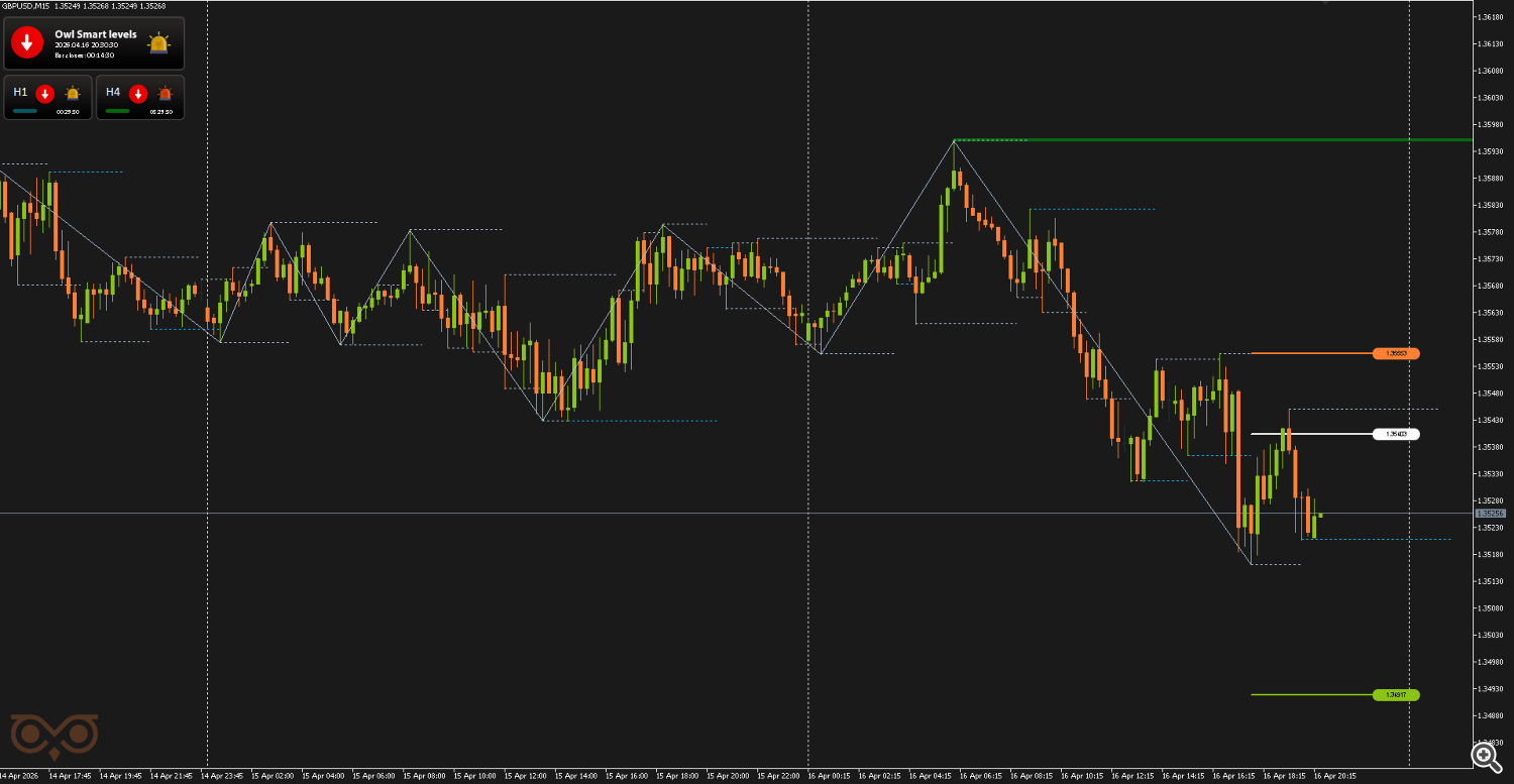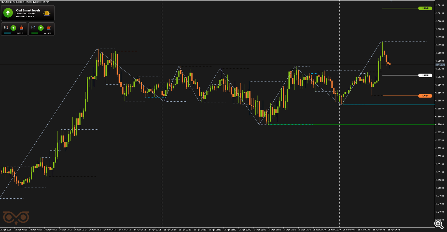 The fourth signal on EURUSD was also received on April 16 and was classified as high-probability. In this case, the market first shows a night move, then forms a pullback, after which a valid signal appears in the direction of the main move.