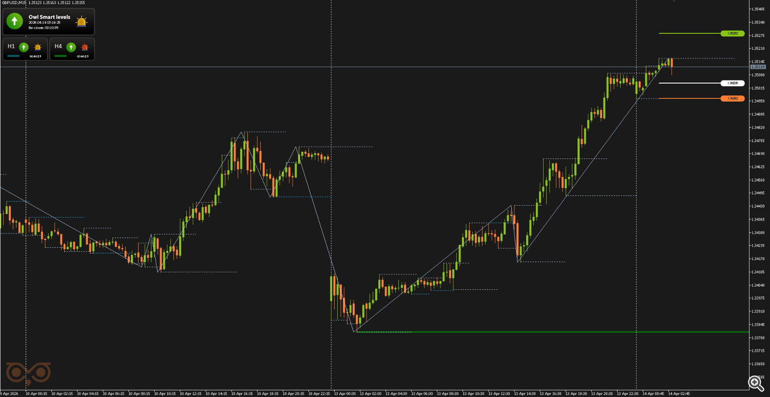 The second signal on GBPUSD was also received on April 14. It did not look strong enough for entry, as the market had already moved significantly upward. The remaining potential becomes limited, and the entry is not in an optimal phase. For this reason, the signal was classified as low-probability and deliberately skipped.