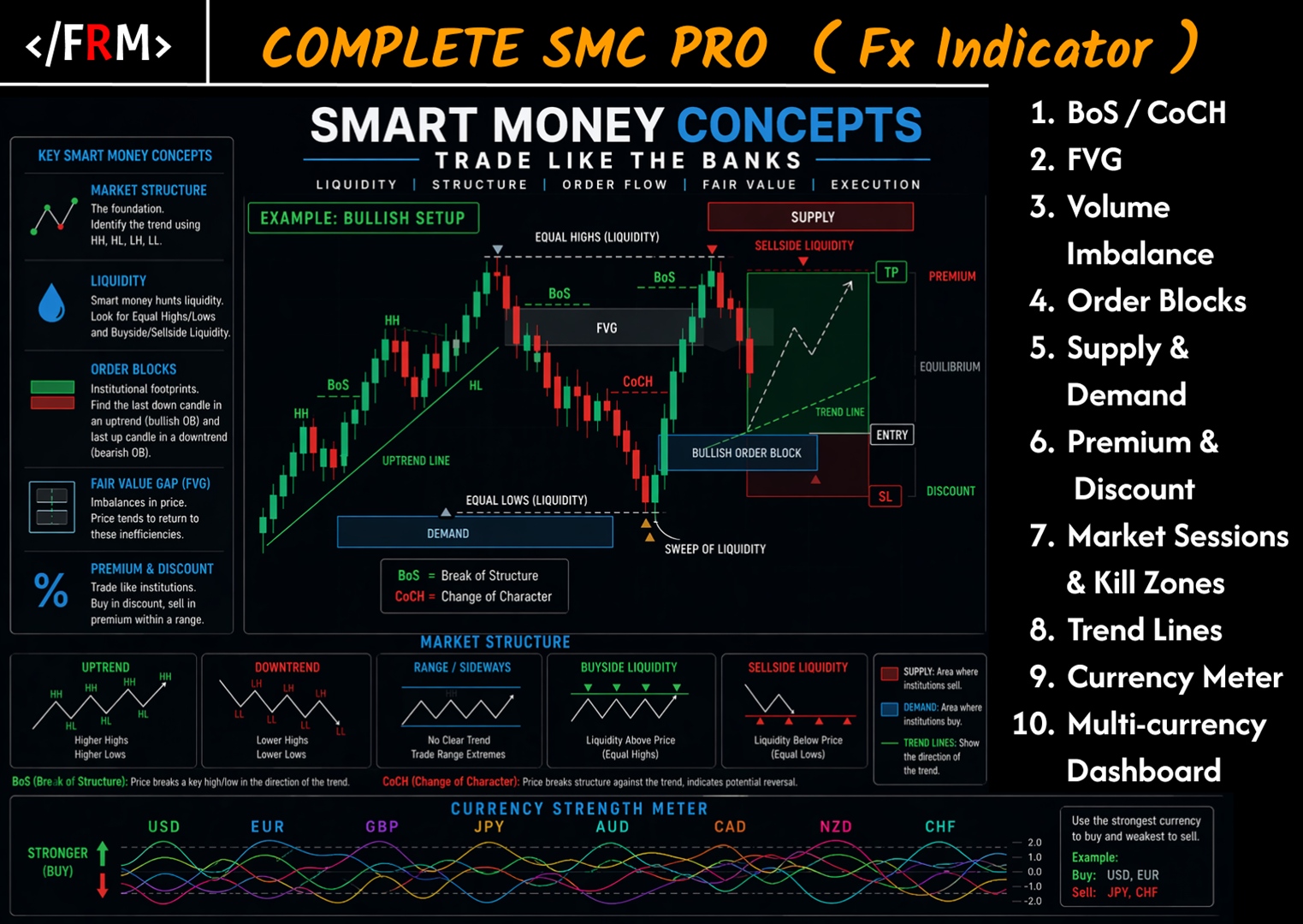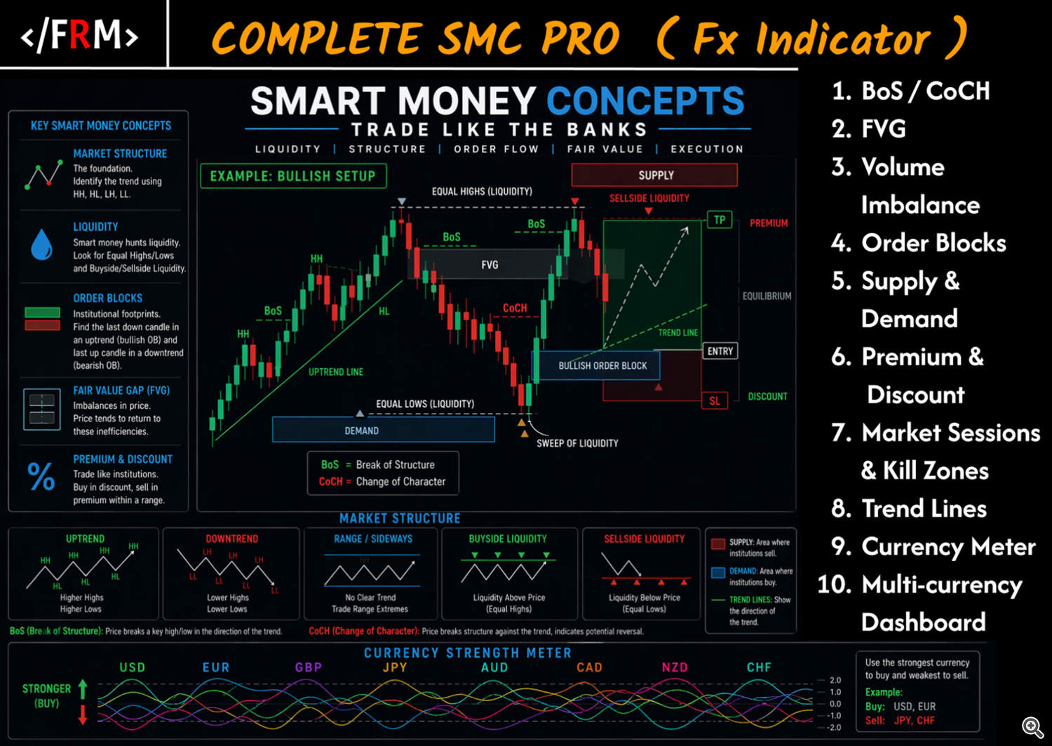 The Complete Smart Market Concepts indicator is your all-in-one institutional-grade tool designed to decode Smart Money Concepts (SMC) and reveal how the "big players" — banks, hedge funds, and institutions — truly move the forex markets.