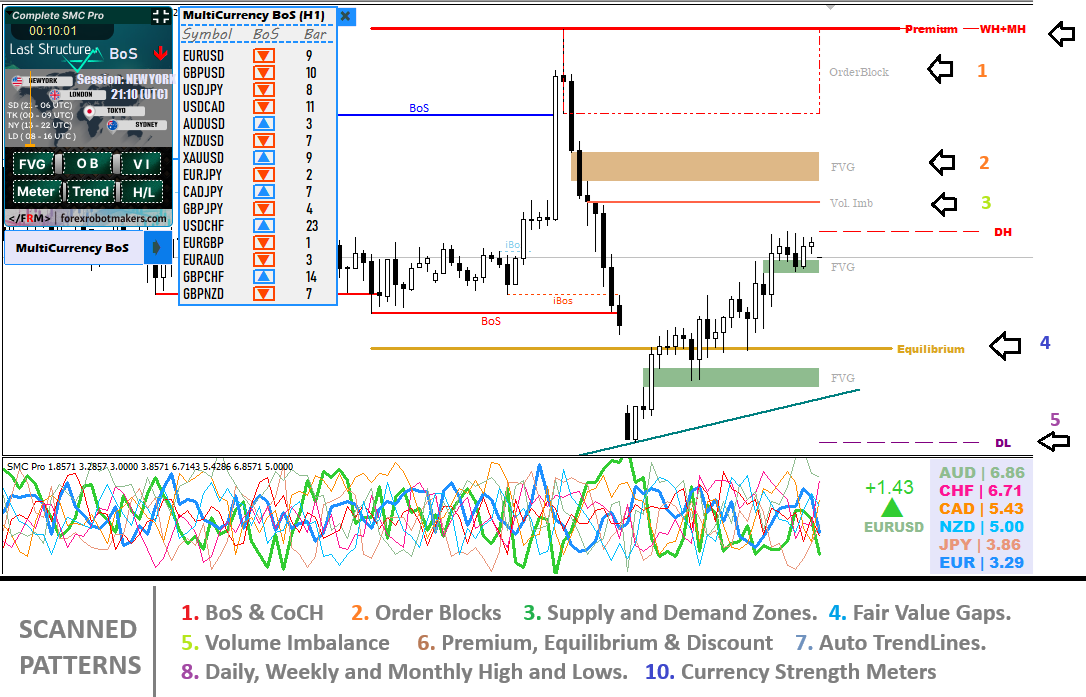 Built specifically for traders who want to trade like the smart money, this indicator automatically identifies and plots the most essential SMC elements directly on your charts, giving you crystal-clear insights without manual drawing or guesswork.