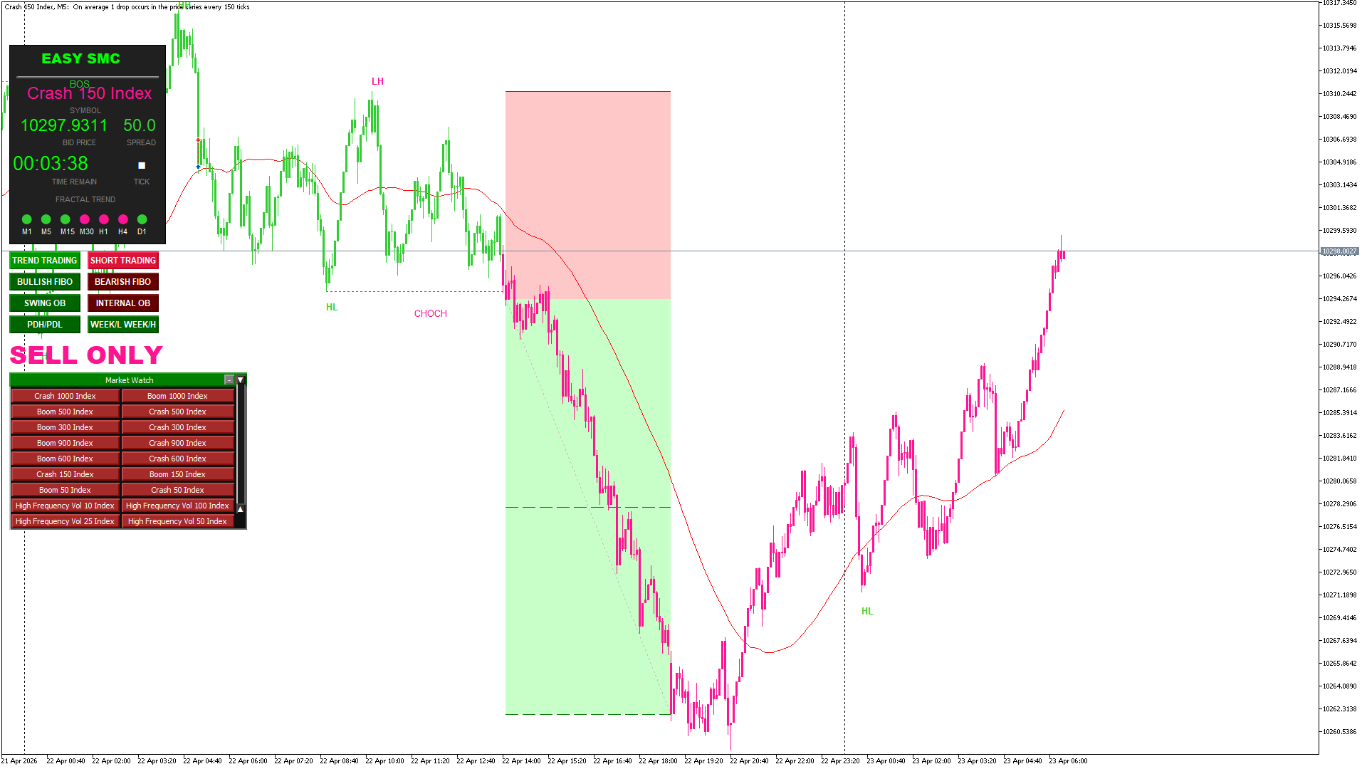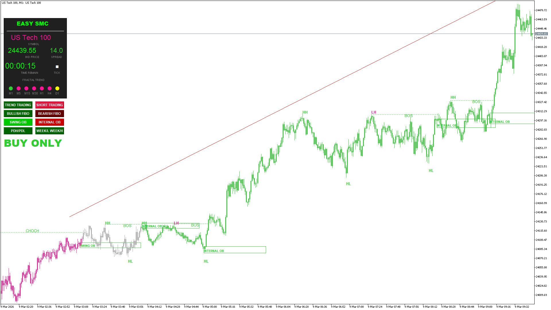 SMC Logic: Automated detection of BOS (Continuation) and CHOCH (Reversal).