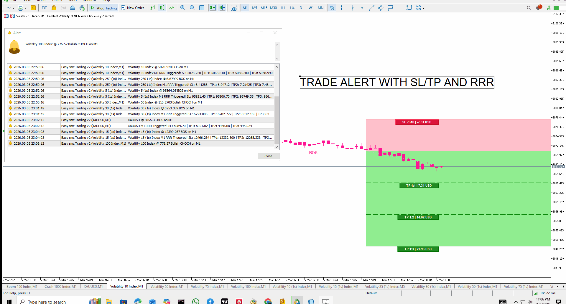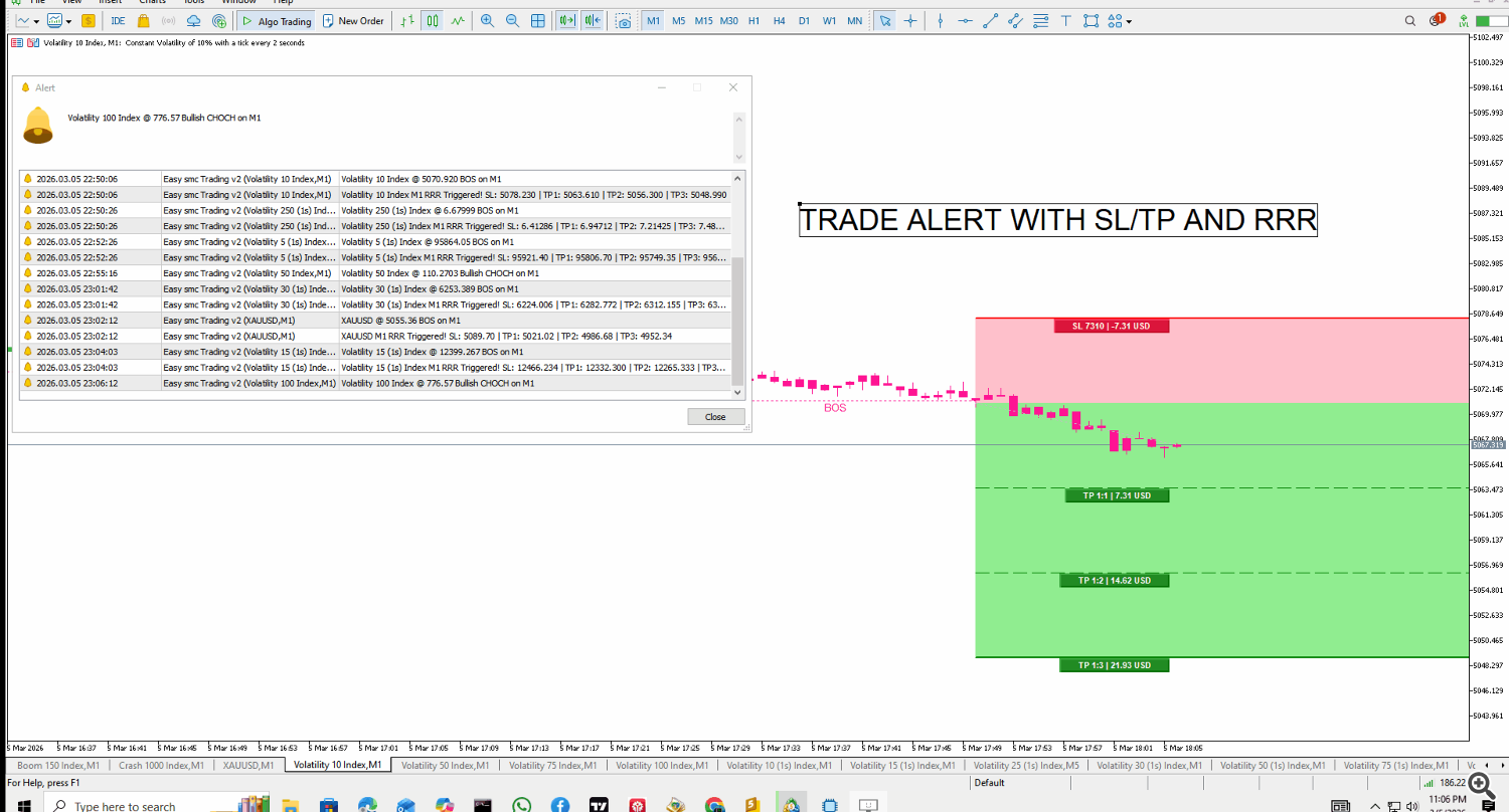 Triple-Alert System: Instant Popups, Sound Alerts, and Mobile Push Notifications for CHOCH, BOS, and RR triggers.
