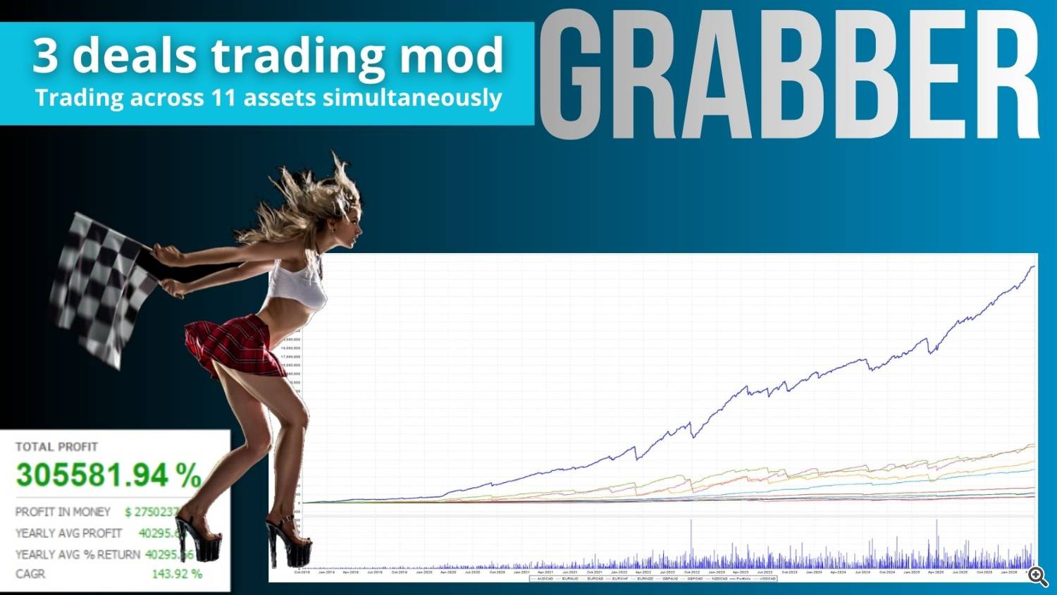 Guys, GRABBER BOT keeps making money. Its most effective trading mode is the 3-trade strategy. These are micro-grids that perform a slight averaging. At the same time, each trade is protected by a stop-loss, so you don’t have to worry about anything bad happening to your deposit. Simply put—deposit funds into your trading account and enjoy the results with complete peace of mind. Here’s what GRABBER BOT’s backtesting looks like in the three-trade mode: