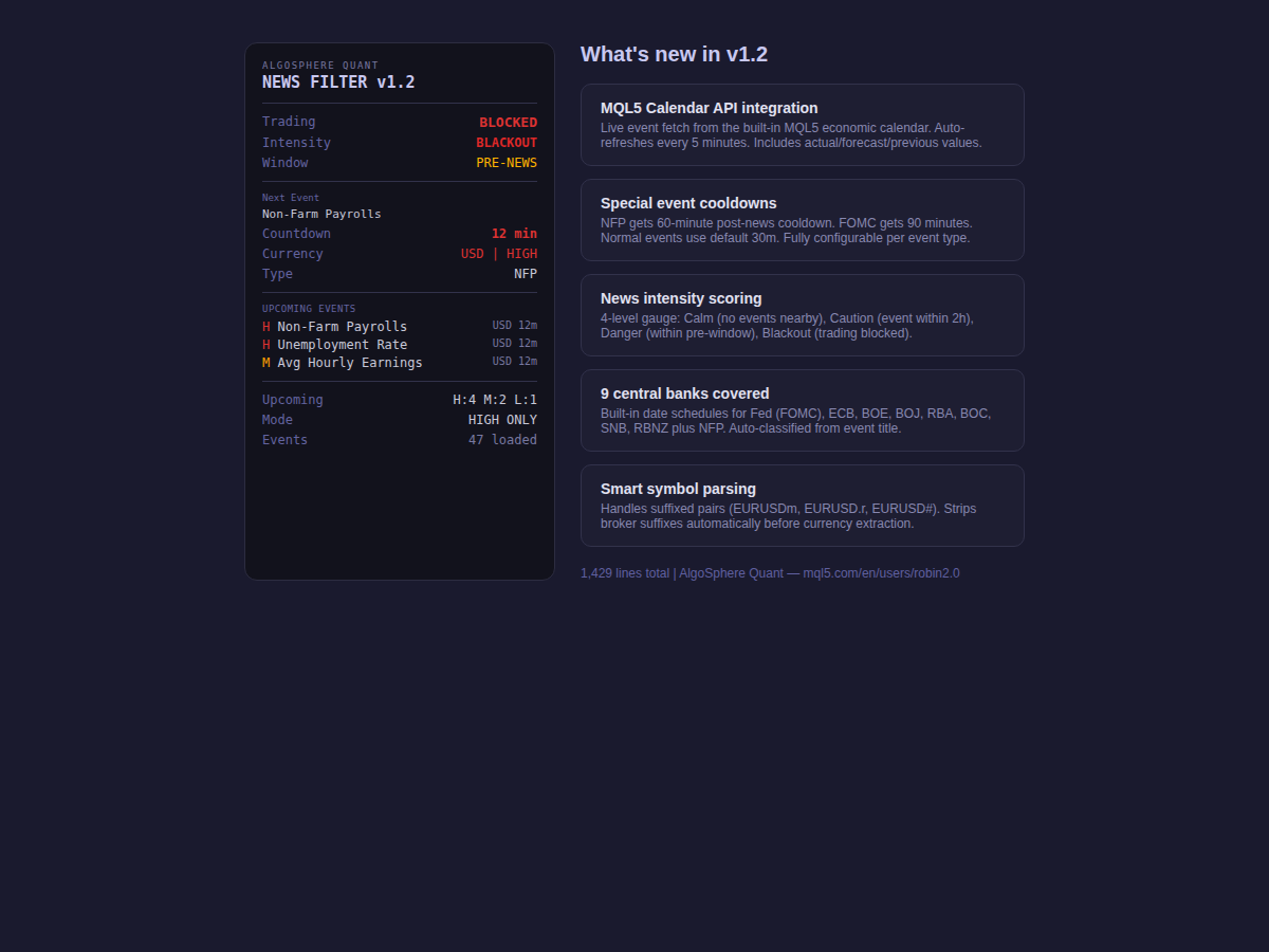 This mini custom-built MetaTrader 5 dashboard is a robust, comprehensive risk management and performance based monitoring tool and utility created to give both Prop firm and personal funded traders full visibility and control over their trading activity in real time.