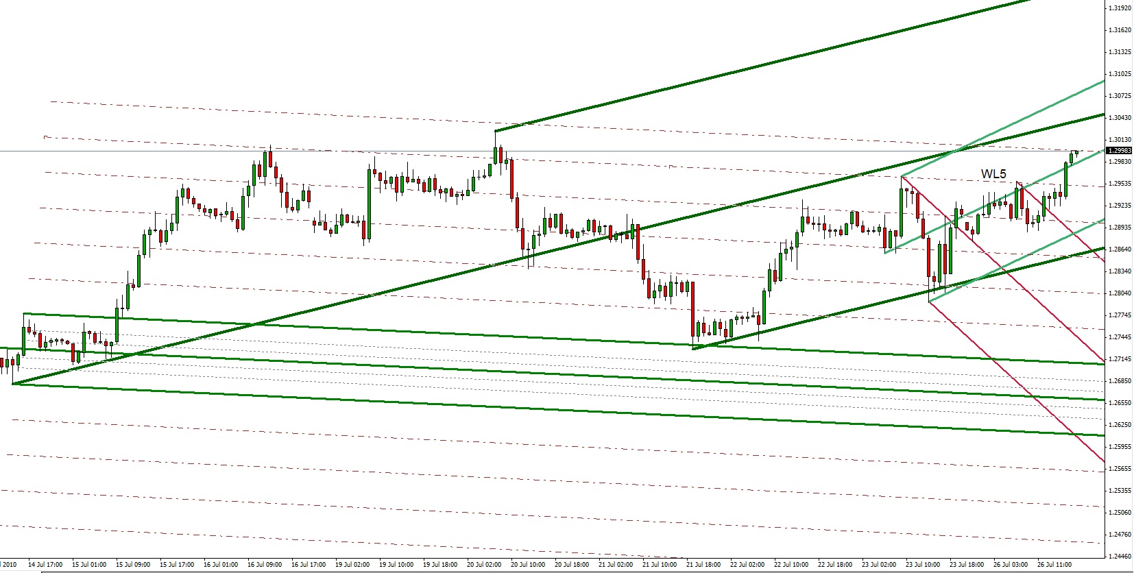 Just updating the situation with EurUsd...been moving sideways for some time, finding support along WL6. Usually when price consolidates for a while, the end result is an explosive move. Be watchful and patient.