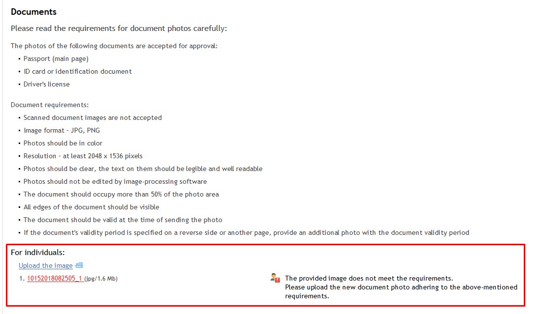 I want ask about the seller signal, upload my ID card is rejected, I don't understand about problem the rejected it, what is the resolution less big?