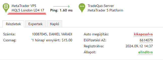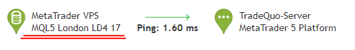 The 1.60ms ping to London MQL5 VPS reveals that their servers are located in London.
