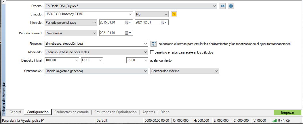 QI 0 00:59:32.355 Core 01 USDJPY Dukascopy FTMO,M5: 116358536 ticks, 355502 bars generated. Environment synchronized in 0:00:00.132. Test passed in 0:00:39.958 (including ticks preprocessing 0:00:09.905).