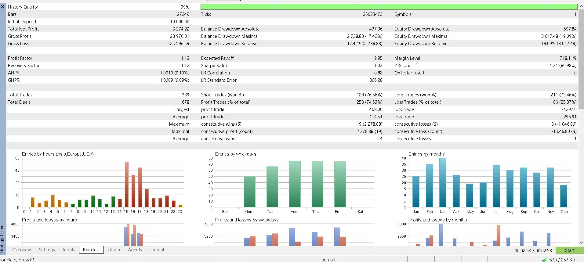 I even set the delay to the same value eventhough my strategy can't really be affected by it because it's a swing trading strategy. I checked the symbol parameters and they all align. I can't find a logical reason behind the difference. My strategy is based on a Hidden Markow Model regime detection system. Maybe the CPU may cause the difference, on one of my computers I have 2.8GHz intel core i7-7700HQ (this test performed better) and on the other I have 1.4 GHz Intel Celeron 2955U (this comouter is used basically as a VPN) I also want to add that I did not use any multithread logic. What's quite disturbing is that the difference is not marginal. On one computer I get a sharpe of 1.79, whereas on the other 1.06. I attached 2 screenshots so that you can compare the results yourself.