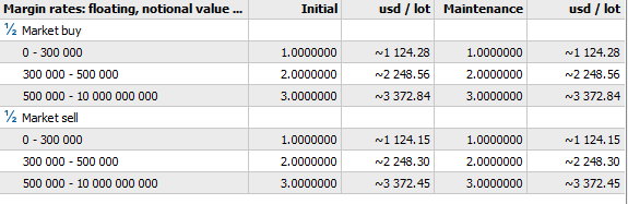 So for 1 lot of EURUSD (~100,000 EUR), I expect ~3,333 EUR margin.