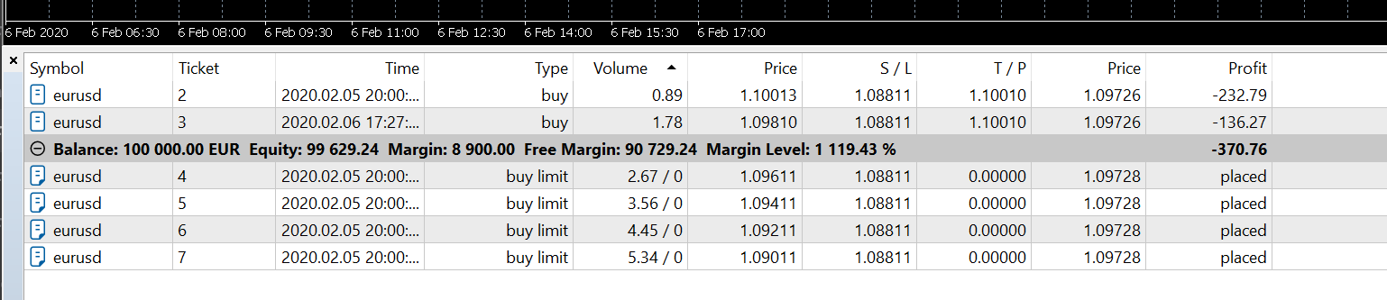 PS : You will find screen fils in attachment and my needed codes. In the main I called function to place orders. In the .mqh there are functions that contains orders placing logic and the logic for lot size computation (respecting max chosen drawdown and available margin in case of failure)