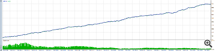 (I also can't see what you punched in for spread and slippage. You have a 7.42 EUR positive difference between your average win and average loss, with about 45% wins versus about 55% losses. Real ticks, spread, and slippage could eat into that).