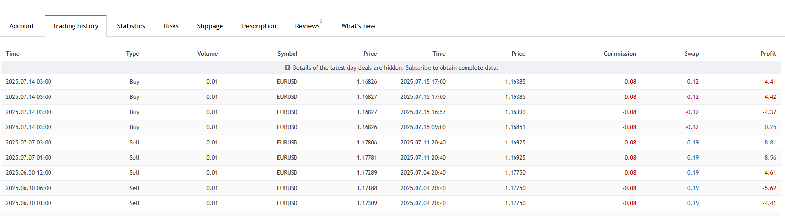 from tab 'Trading History' of a MT5 signal, how can I know SL/TP prices and comments of each trade ?