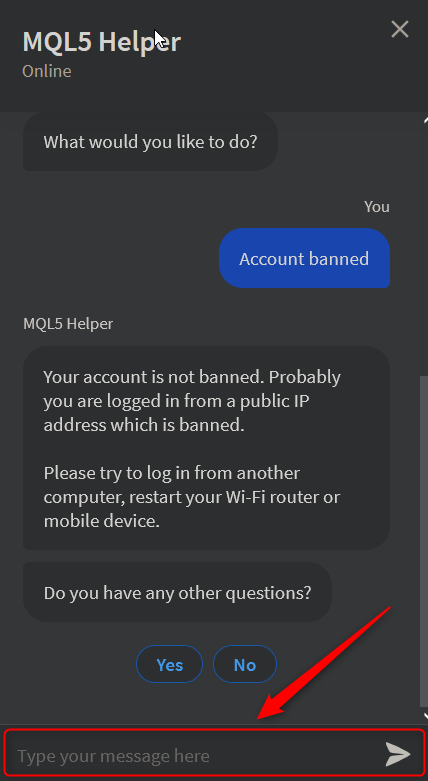 How to contact the servicedesk? I visited https://www.mql5.com/en/contact but the 'MQL5 Helper BOT' only give machine/standard answers? So I can't provide any specific info it seems.