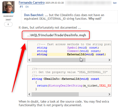 Don Baechtel: ... but the CDealInfo class does not have an equivalent DEAL_EXTERNAL_ID string function. Why not?