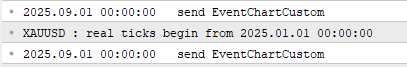 #property indicator_chart_window int OnInit() { ::EventChartCustom(0, 33345, 666, 777, "send EventChartCustom"); return(INIT_SUCCEEDED); } int OnCalculate(const int32_t rates_total, const int32_t prev_calculated, const int32_t begin, const double &price[]) { return(rates_total); } void OnChartEvent(const int id, const long &lparam, const double &dparam, const string &sparam) { Print(sparam); } //+------------------------------------------------------------------+