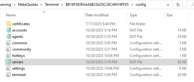 4 - Back to your non-working mt5 platform, select File - Open Data Folder and access to "config" folder.