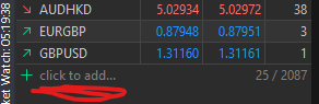 click on "click to add" and then start typing the symbol for gold. often XAUUSD, but can be others, such as GOLD, or you may need to ask your broker what they use.