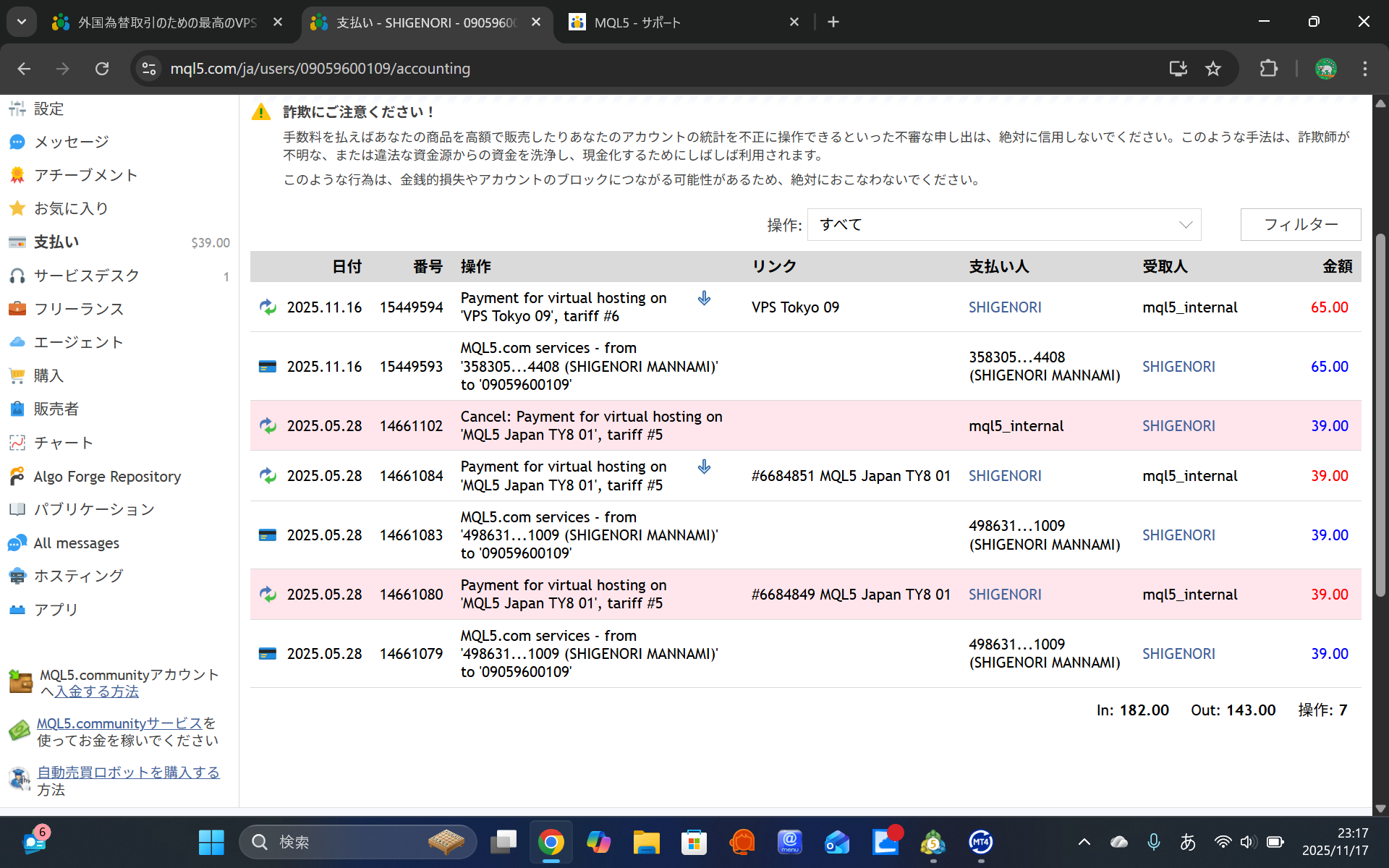 I purchased a VPS from Tokyo09 on November 16th.