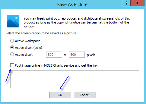 And, in this case - I do not tick the "Post image online in MQL5 charts service and get the link" - means: I am not using it in case of external VPS: