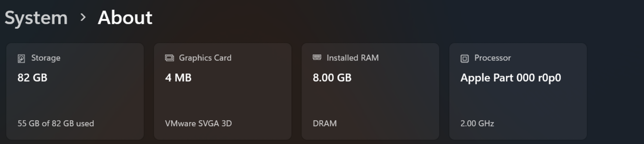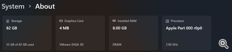 CS 0 23:00:54.398 Startup Windows 11 build 26200, 2 x Apple Part 000 r0p0, x64, 1 / 3 Gb memory, 4 / 63 Gb disk, UAC, GMT+1