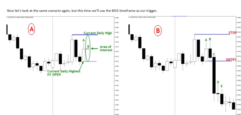 Naturally, the area of interest evolves throughout the day, when the day's high/low is exceeded, and when a 1H candle opens higher, lower.
