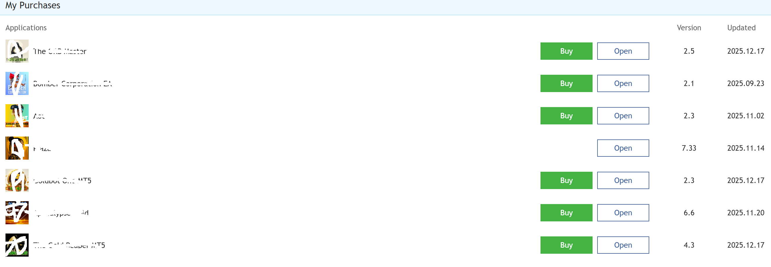 If you do not see your purchase in "My Purchases" tab of Metatrader so you need to update this tab to do the following:
